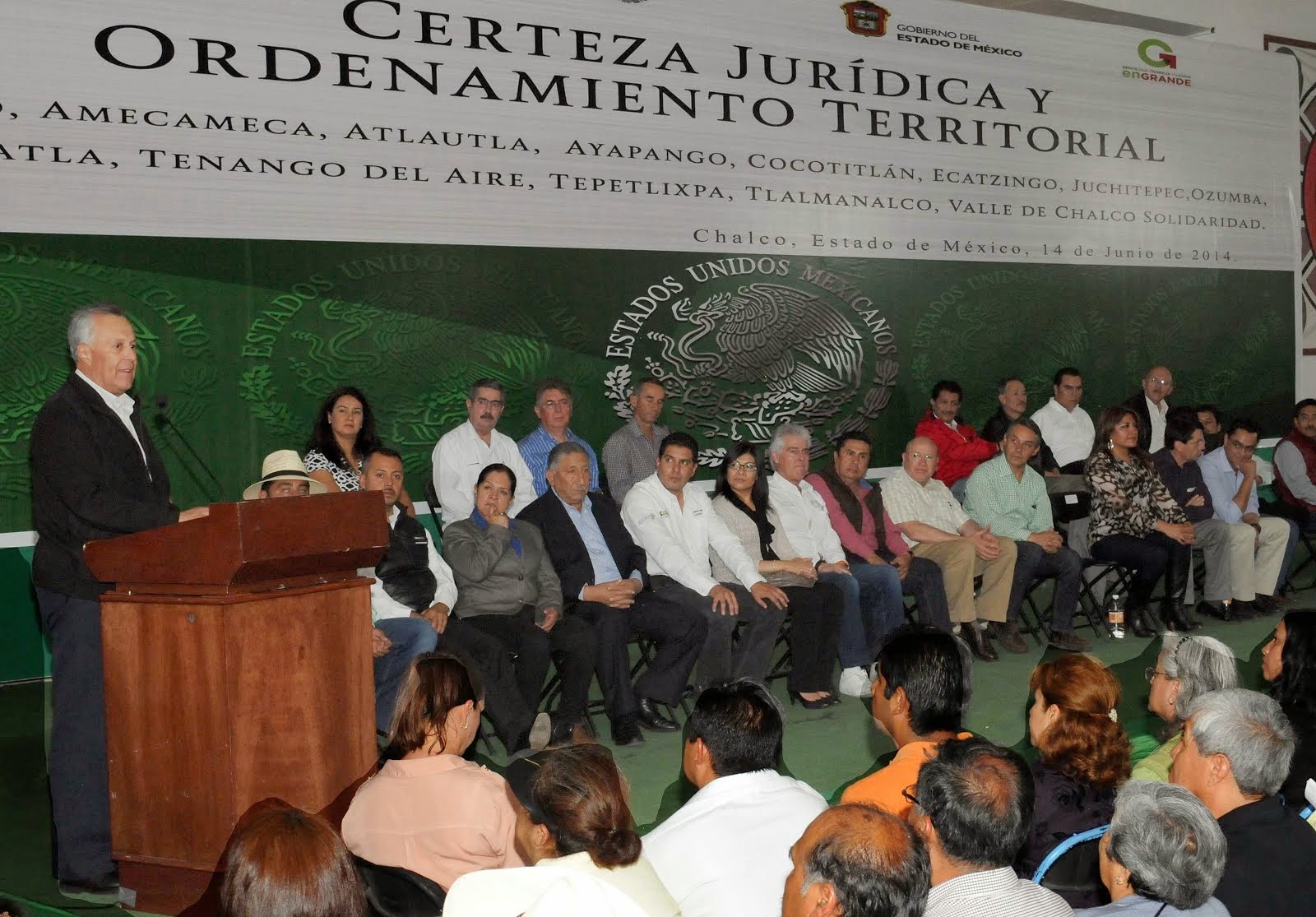 Al hacer entrega de carpetas básicas agrarias a comisariados ejidales de 13 municipios de la región oriente del Estado de México, el Subsecretario de Ordenamiento Territorial de la Sedatu, Gustavo Cárdenas Monroy, señaló que gracias al apoyo presidencial y a la participación de la sociedad en su conjunto, ha sido posible cumplir con éxito el programa implementado por el Ejecutivo Federal, en el rubro de dar certeza jurídica a los trabajadores del campo y ordenar su territorio. Ante más de mil ejidatarios congregados en el Auditorio Municipal del Pueblo de Chalco, acompañado del Alcalde Francisco Osorno Soberón e Isidro Pastor Medrano, presidente del gabinete regional del gobierno del Estado de México, el funcionario federal hizo un amplio reconocimiento al gran equipo de trabajo que se ha creado en la entidad, pero fundamentalmente a la participación de autoridades y legisladores y a su vocación de servicio que ha hecho posible llevar a los ejidatarios los beneficios del programa en cada uno de sus lugares de origen. Con el evento en Chalco, al que asistieron los 13 alcaldes, diputados locales y el federal, suman ya 84 de los125 municipios, que ya cuentan con módulos de atención a los núcleos y sujetos agrarios, cuyos servicios, por instrucción presidencial, son absolutamente gratuitos, además de previamente haber firmado el Convenio de la Procuraduría Agraria con distintos Ayuntamientos. Al respecto, Cárdenas Monroy reiteró que las Audiencias Públicas Agrarias han sido un éxito, bien aceptada por los ejidatarios. "Los que pensaron que el programa sería rechazado, se equivocaron, los trabajadores del campo ya se dieron cuenta de que el Presidente Enrique Peña Nieto, cumple su compromiso con ellos hasta sus últimas consecuencias. El Presidente no se olvida del compromiso con los ejidatarios", enfatizó. Insistió en el significado del ordenamiento territorial y en la certeza jurídica, una de las prioridades presidenciales y una de las demandas más sentidas de los campesinos, por lo que resaltó que se han entregado carpetas básicas agrarias en todos los municipios visitados, títulos que se han exigido desde hace más de 30 ó 40 años. Ahora, remarcó, ejidatarios de varios estados del país ya cuentan con la tan anhelada certeza jurídica. Ello, abundó, se ha logrado gracias a los módulos de atención, a las audiencias públicas, que se llevan a cabo en sus lugares de origen. Se acabaron los viajes innecesarios y caros, pero además los sobornos a que sujetaban a los ejidatarios. Ahora todo es gratuito, apuntó. Manifestó que en esta zona oriente del estado de México, la Procuraduría Agraria, el Registro Agrario Nacional, la Corett y la Sedatu trabajan arduamente para que las tierras mexiquenses sigan produciendo alimentos, porque son tierras de oportunidades y son el patrimonio de las nuevas generaciones, aprovechando la infraestructura con el ordenamiento territorial. Por su parte, el presidente del gabinete regional del Estado de México, Isidro Pastor, en su mensaje subrayó la importancia del Programa de Certeza Jurídica y Ordenamiento Territorial implementado por el presidente Enrique Peña Nieto, y los invitó a que lo aprovechen al máximo. No esperen a que lleguen los tiempos electorales para pedirles indicó. Manifestó que hay que exigirle a la autoridad a que les cumplan sus demandas, y deben entender el contenido de estos eventos; la certeza jurídica y el ordenamiento territorial no son obras materiales, sino administrativas. Lo importante para ustedes es obtener la certeza jurídica y por eso deben ser participativos y trabajar unidos para lograr este beneficio. Pastor Medrano, también Secretario de Desarrollo Metropolitano mexiquense, dijo que con este evento se da testimonio del compromiso del Presidente Enrique Peña Neto y del gobernador Eruviel Ávila Villegas, con los trabajadores del campo. Este programa es un gran reto y está dando frutos. Ahí están los instrumentos que pone la Sedatu y hay que aprovecharlos, enfatizó. En su oportunidad, el delegado de la Procuraduría Agraria en el Estado de México, Melchor Velázquez Garduño, dio a conocer a que esta es la onceava reunión de Certeza Jurídica y Ordenamiento territorial. Informó que se han firmado 84 convenios de coordinación y se han instalado módulos de atención en cada municipio, además se han atendido 836 núcleos agrarios de 1, 234 y están por entregarse mil escrituras por parte de la Corett, esto aparte de que los servicios que se brinda a los núcleos y sujetos agrarios son gratuitos. En la reunión estuvieron presentes los alcaldes de Amecameca, Chalco, Juchitepec, Tenango del Aire, Atlautla, Cocotitlán, Ozumba, Tepetlixpa, Valle de Chalco Solidaridad, Ayapango, Ecatzingo, Temamatla y Tlalmanalco. Asimismo, se contó con la asistencia del delegado de la Sedatu en el Estado de México, Fernando Portilla Galán, los diputados Leticia Calderón, Juan Demetrio Sánchez y Juan Manuel Carbajal; de igual forma Alejandro Monroy Berecochea, Isaías García Robledo, José Luis Flores Quezada, Enrique Álvarez Raya, Levy Arrocena y José María Ambía, de la Sedatu. | |