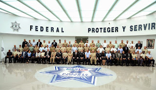 Luego de recorrer las instalaciones de la Policía Federal, los visitantes acudieron al Auditorio de la corporación en la ex Hacienda de Belén de las Flores, donde el Comisionado General de la corporación, Maestro Enrique Francisco Galindo Ceballos, ofreció una conferencia. En ella explicó la integración del Sistema Nacional de Seguridad Pública, sus avances y resultados, bajo la óptica del entendimiento, la colaboración y el acuerdo de todos los integrantes.
